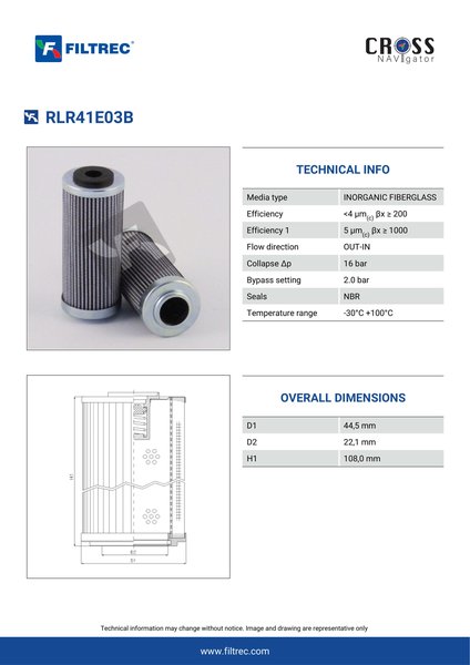 Engineered with their high performance media and a durable design, the RLR41E03B provides reliable and consistent performance over its lifespan, even in harsh operating environments. When you order from FilterFinder, you can trust that you are getting a reliable and high-quality replacement filter that will keep your system running smoothly.