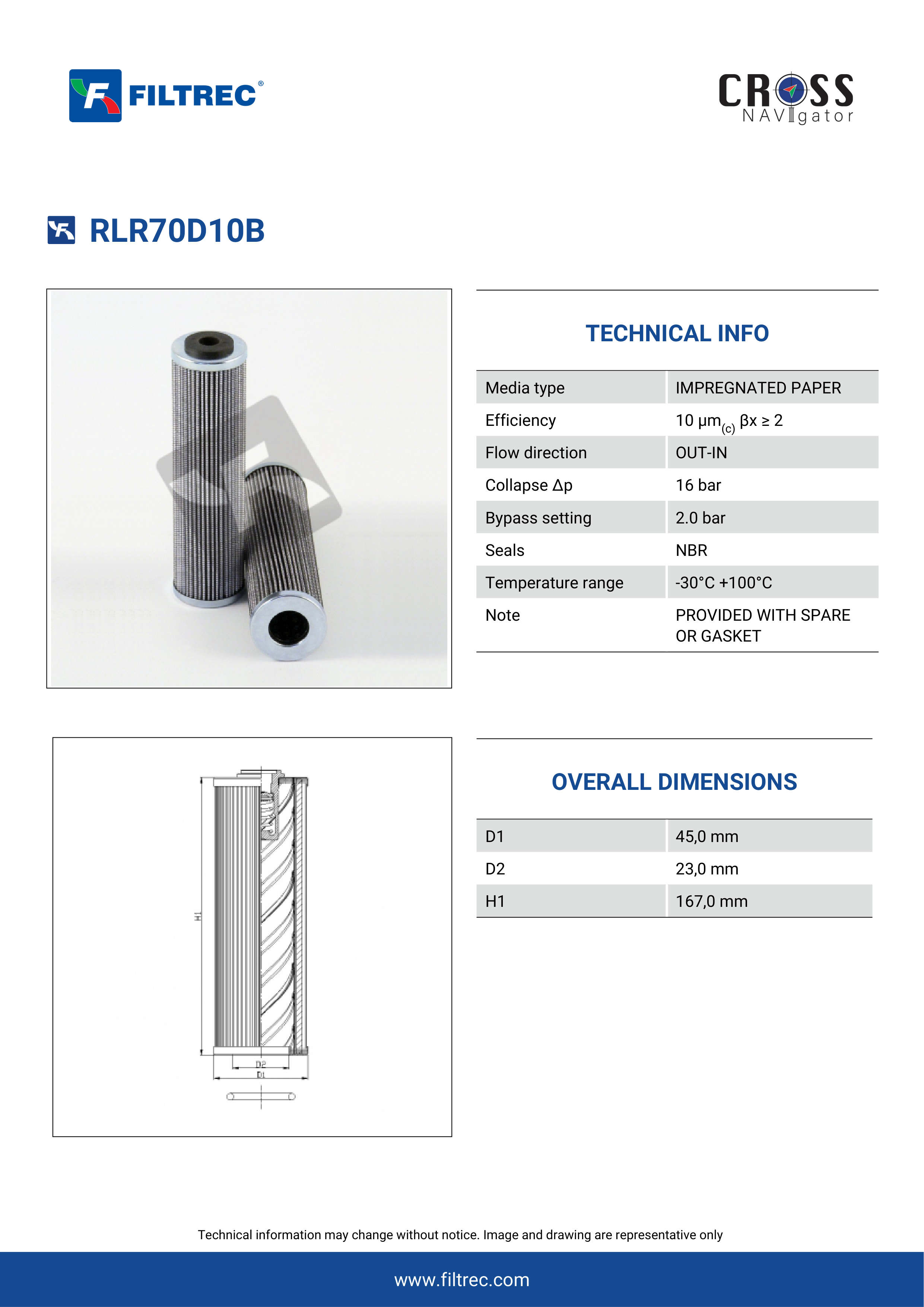 The efficiency of the element is shown using the Micron (µ) and Beta (β) ratings. The micron rating indicates the size of the particle being filtered and the beta rating the efficiency, calculated as 1/β.