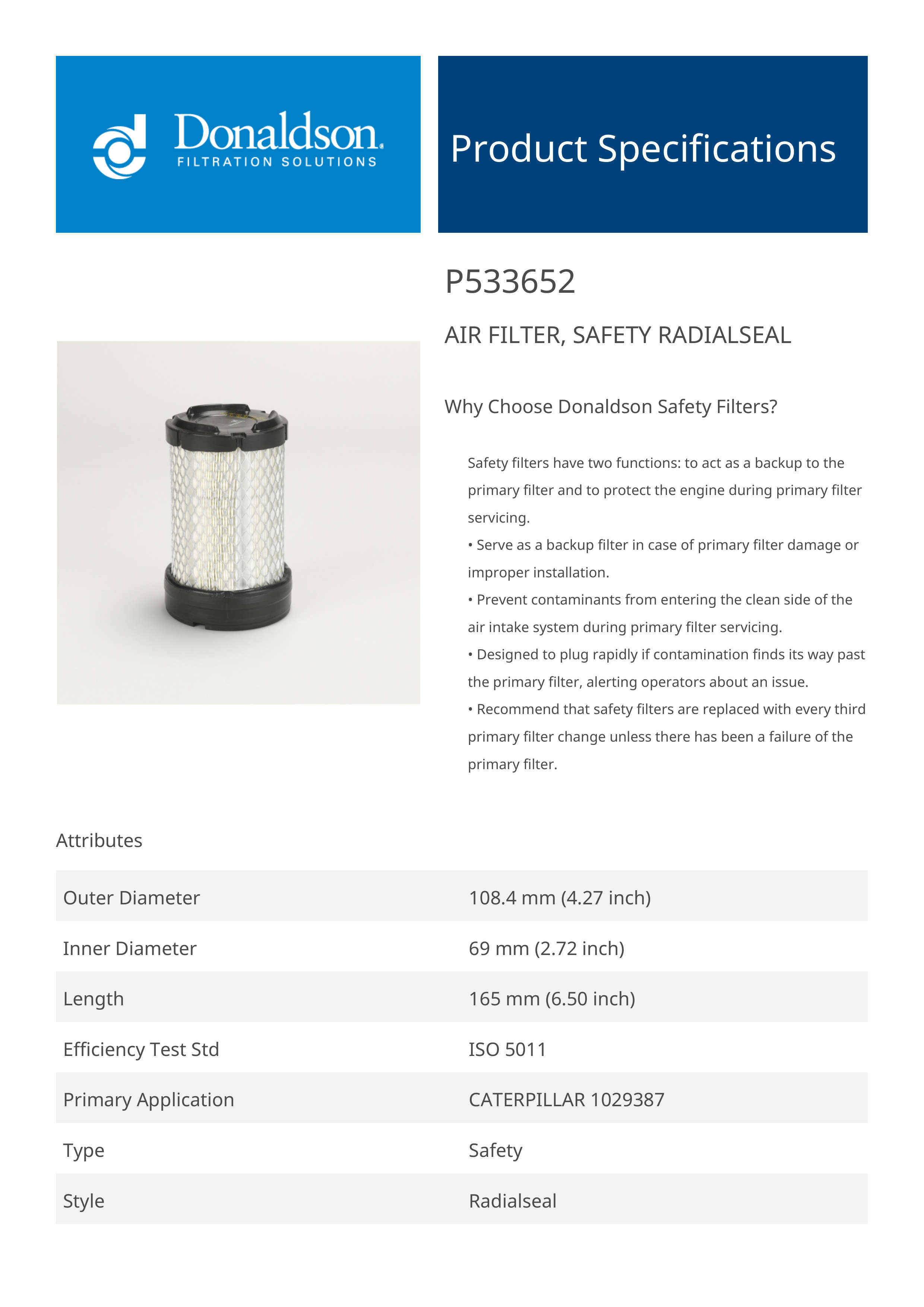 Why Choose Donaldson Safety Filters?Safety filters have two functions: to act as a backup to the primary filter and to protect the engine during primary filter servicing.