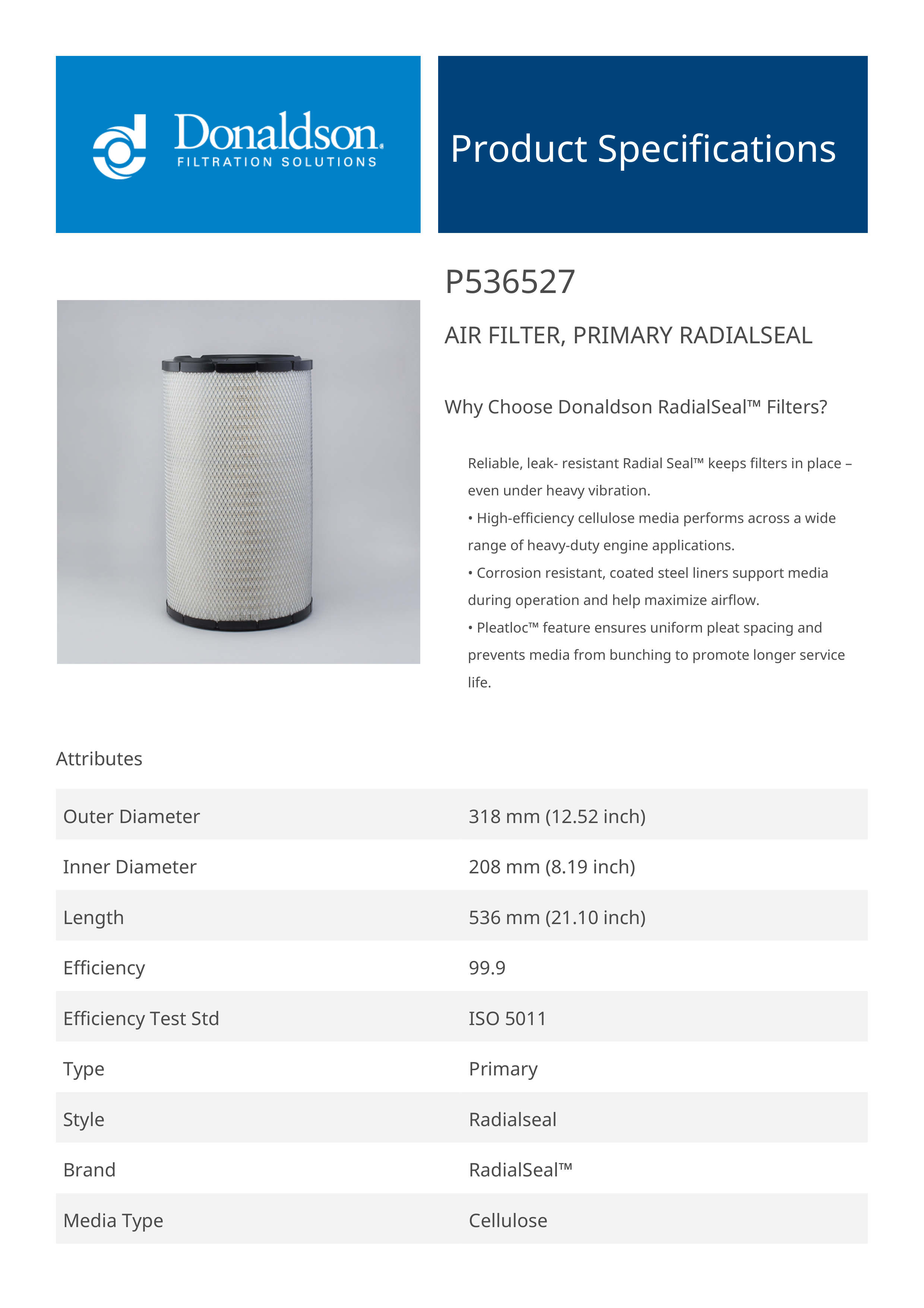 The efficiency of the element is shown using the Micron (µ) and Beta (β) ratings. The micron rating indicates the size of the particle being filtered and the beta rating the efficiency, calculated as 1/β.