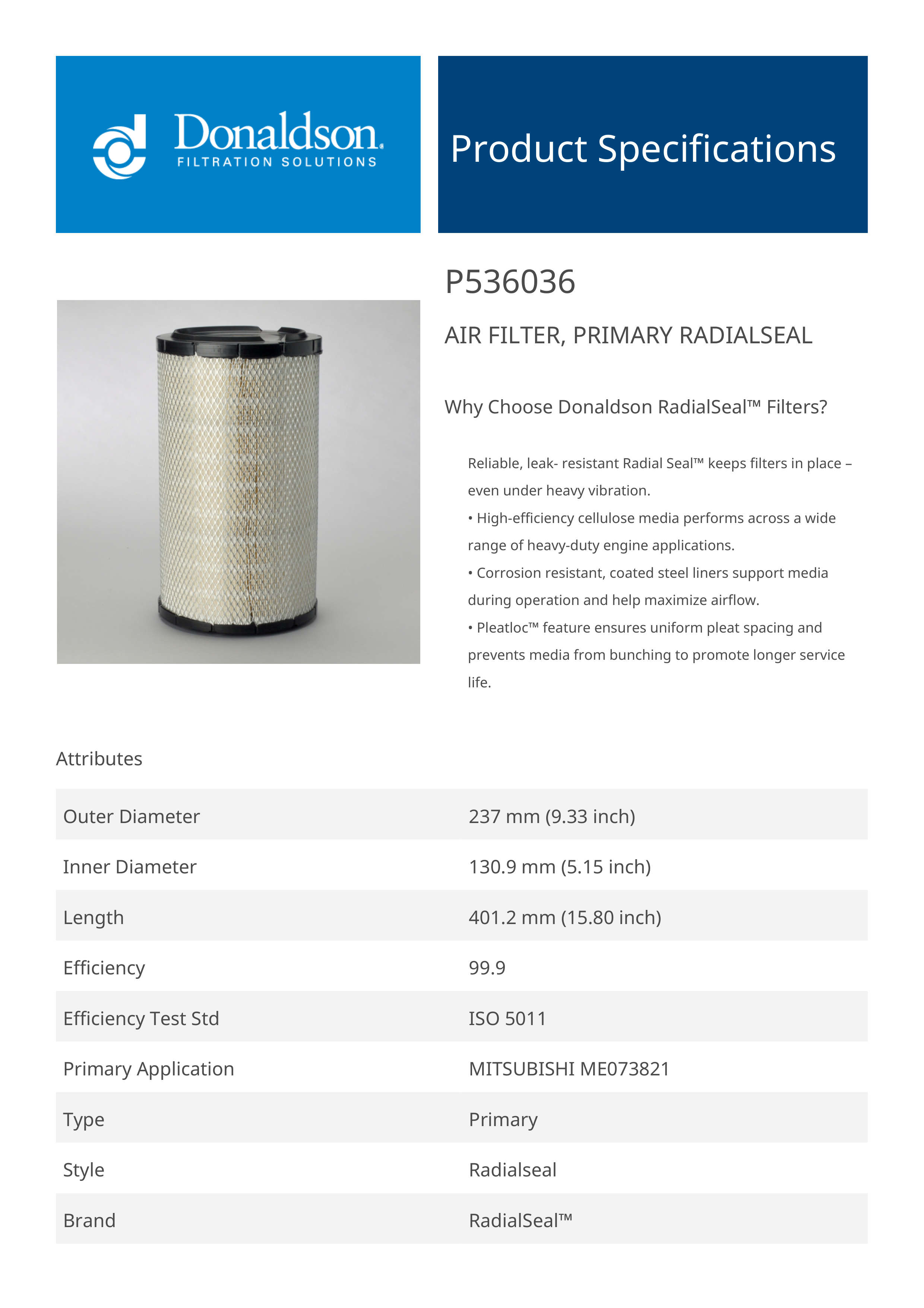 Why Choose Donaldson RadialSeal™ Filters?Reliable, leak- resistant Radial Seal™ keeps filters in place – even under heavy vibration.
