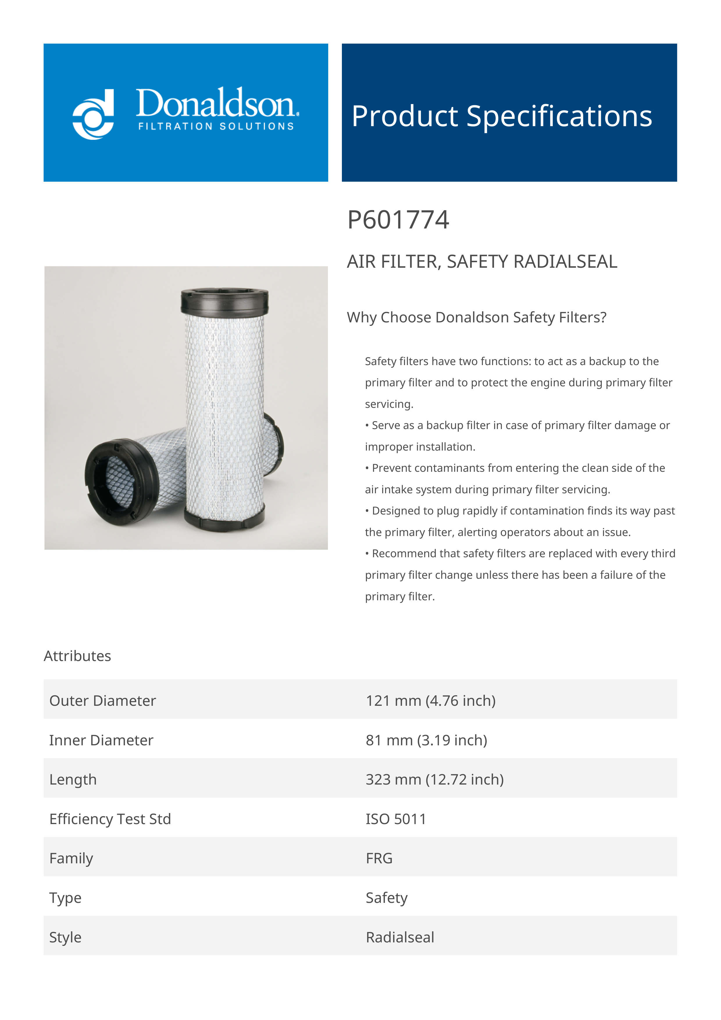 Why Choose Donaldson Safety Filters?Safety filters have two functions: to act as a backup to the primary filter and to protect the engine during primary filter servicing.