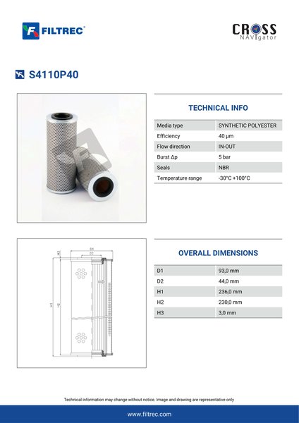 Engineered with their high performance media and a durable design, the S4110P40 provides reliable and consistent performance over its lifespan, even in harsh operating environments. When you order from FilterFinder, you can trust that you are getting a reliable and high-quality replacement filter that will keep your system running smoothly.