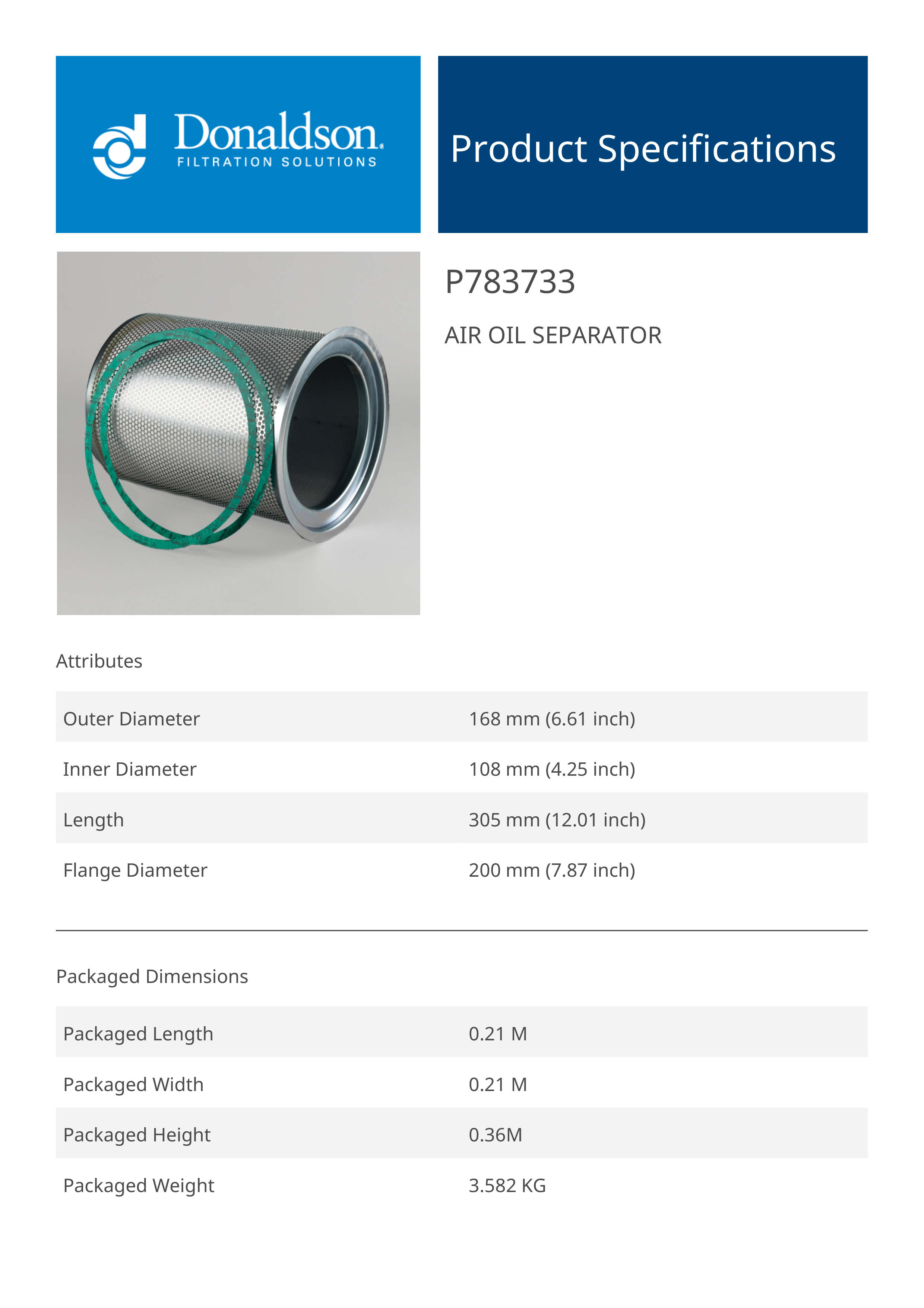 Genuine Donaldson P783733 Air Oil Separator is designed to separate oil from compressed air systems, reducing oil carryover and improving air quality. It enhances system efficiency and protects downstream equipment.