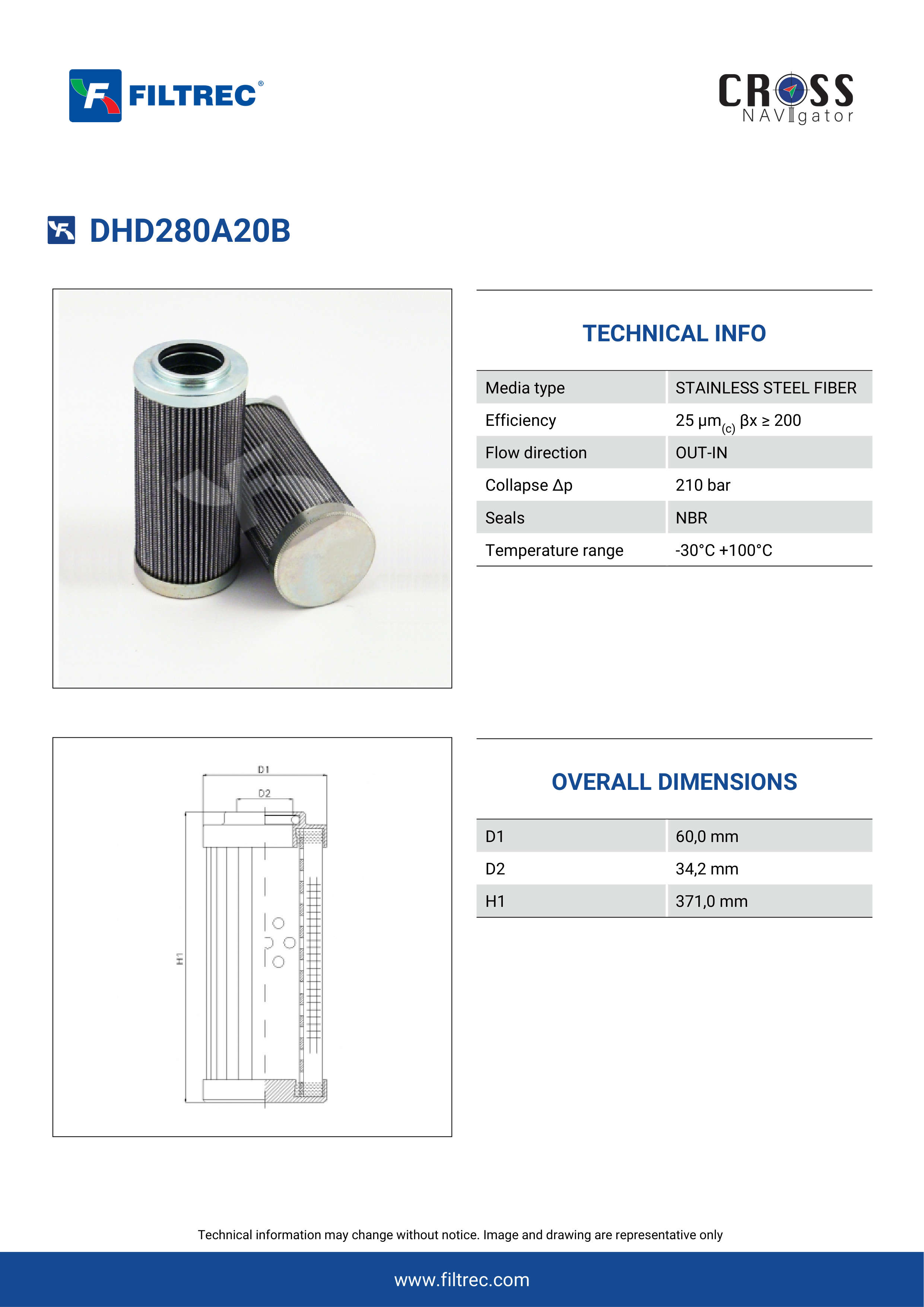 Genuine Filtrec DHD280A20B. This Filtrec element is designed to meet or exceed the quality and performance of brand OEM’s ensuring superior filtration performance and long-lasting durability.