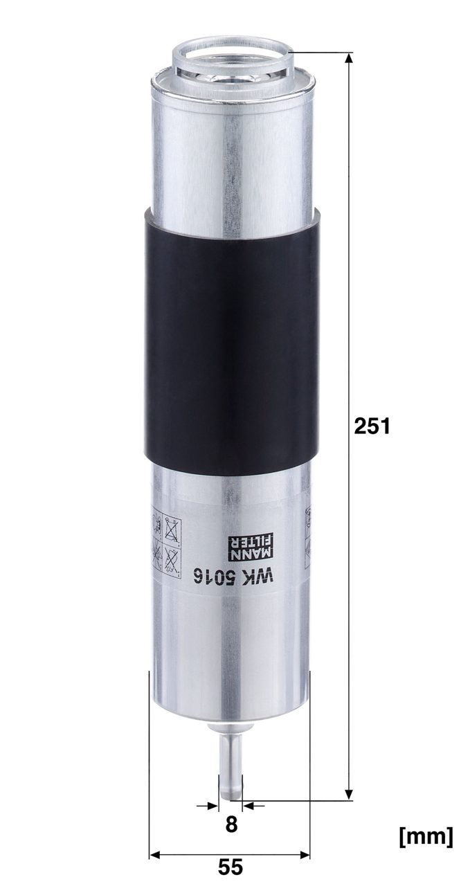 High-quality MANN-FILTER fuel filters remove unwanted and damaging dirt particles from the fuel and thus prevent possible damage. Thanks to the highest degree of separation and sealing, the fuel filter ensures functional reliability and optimum protection during the entire maintenance interval.Specification