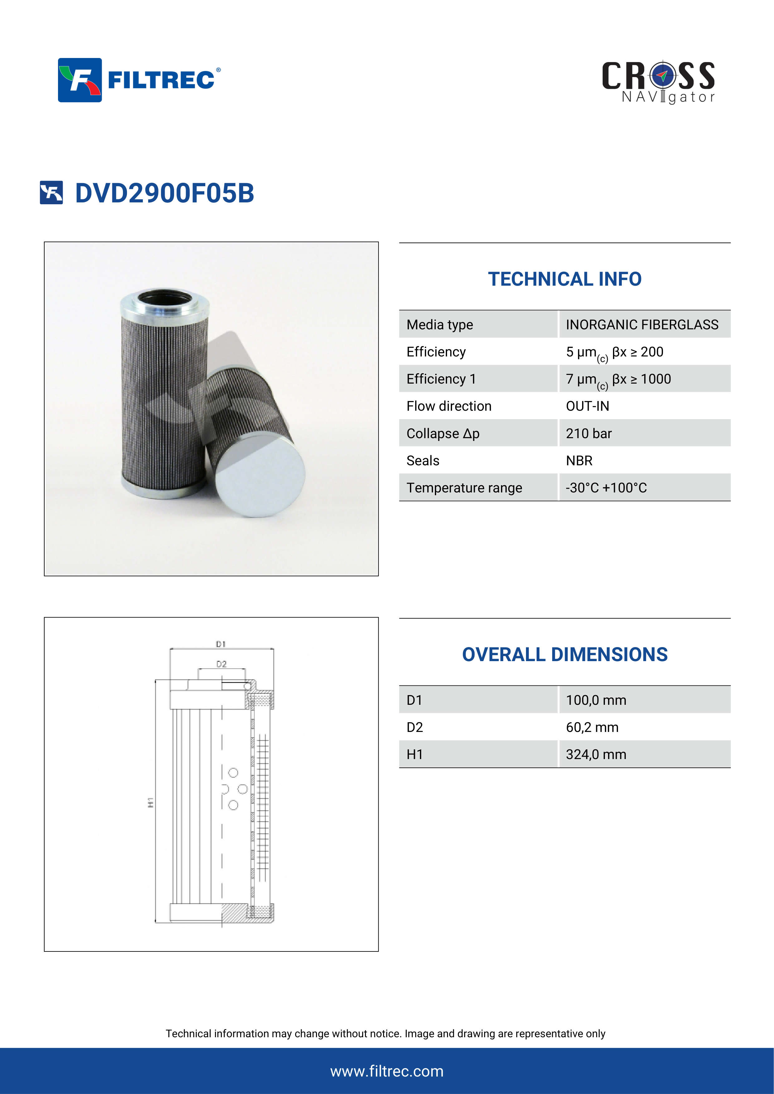 Genuine Filtrec DVD2900F05B. This Filtrec element is designed to meet or exceed the quality and performance of brand OEM’s ensuring superior filtration performance and long-lasting durability.Engineered with their high performance media and a durable design, the DVD2900F05B provides reliable and consistent performance over its lifespan, even in harsh operating environments. When you order from FilterFinder, you can trust that you are getting a reliable and high-quality replacement filter that will keep your system running smoothly.