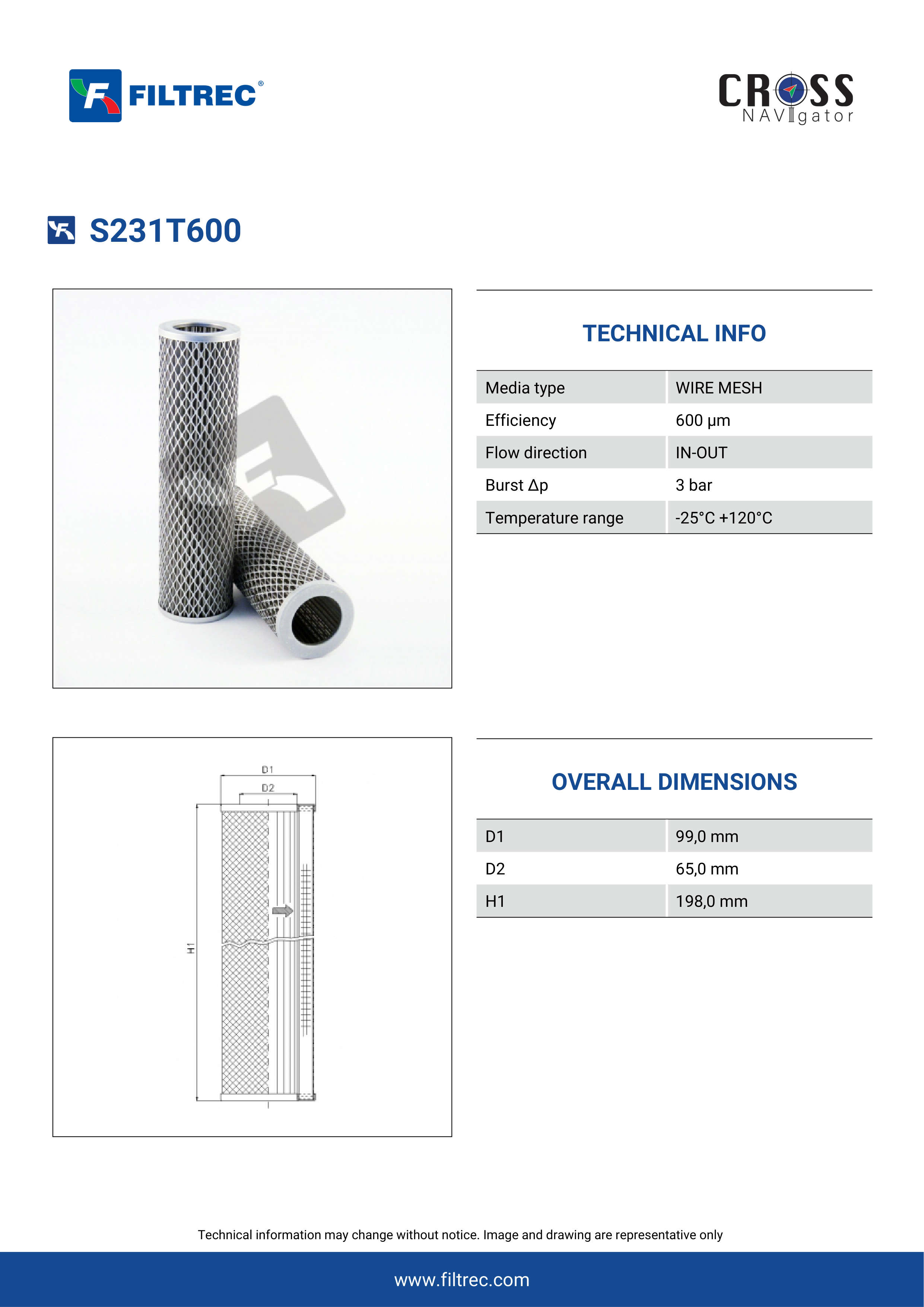Genuine Filtrec S231T600. This Filtrec element is designed to meet or exceed the quality and performance of brand OEM’s ensuring superior filtration performance and long-lasting durability.