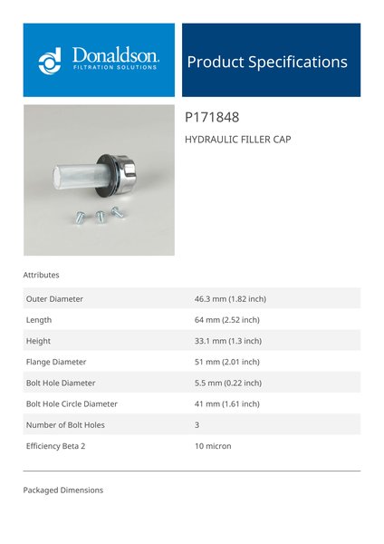 Genuine Donaldson P171848 Hydraulic Filler Cap is engineered to deliver reliable performance and durability across a wide range of applications. Designed with high-quality materials, it ensures consistent functionality while meeting demanding operational requirements.
