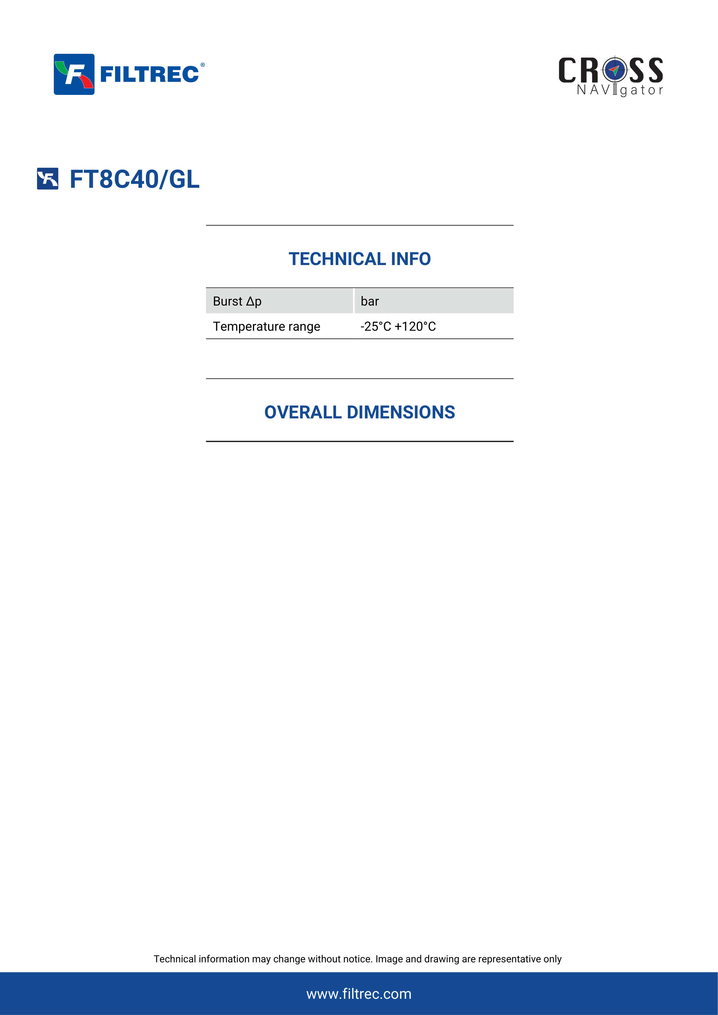 Genuine Filtrec FT8C40/GL. This Filtrec element is designed to meet or exceed the quality and performance of brand OEM’s ensuring superior filtration performance and long-lasting durability.