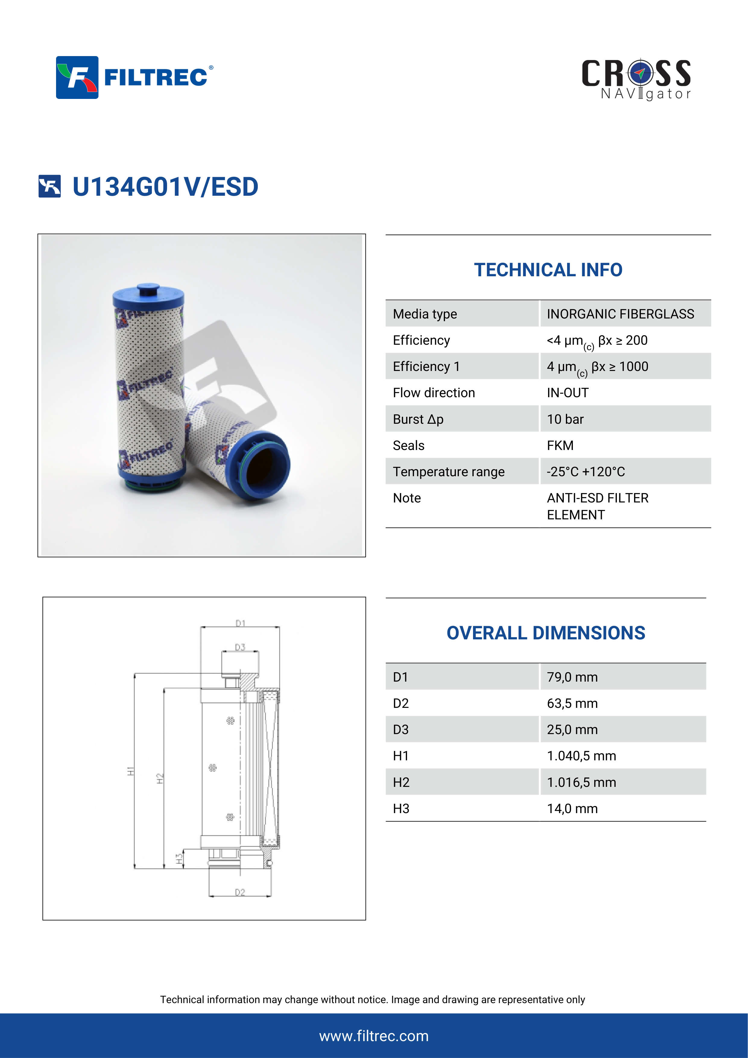 The efficiency of the element is shown using the Micron (µ) and Beta (β) ratings. The micron rating indicates the size of the particle being filtered and the beta rating the efficiency, calculated as 1/β.