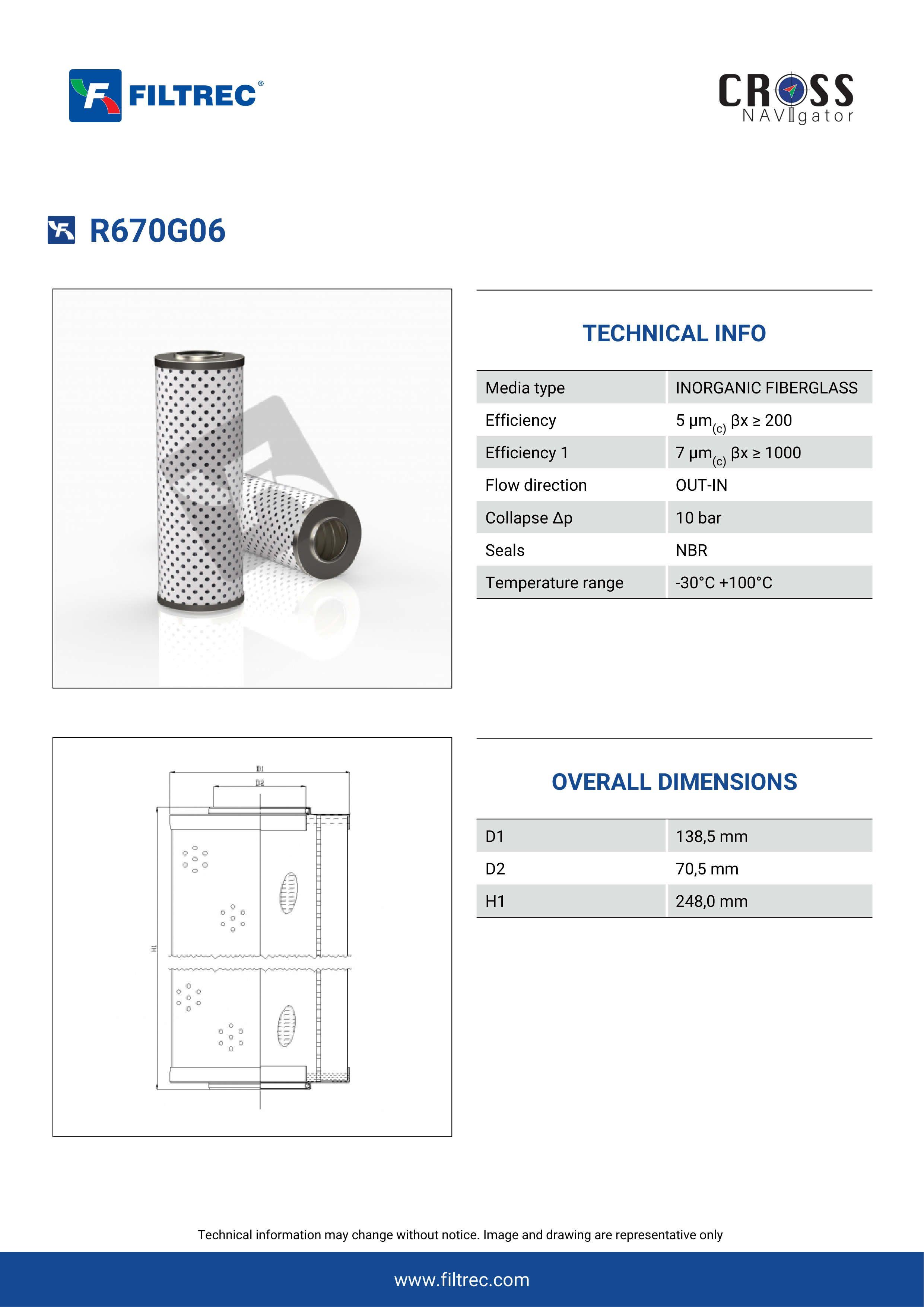 Genuine Filtrec R670G06. This Filtrec element is designed to meet or exceed the quality and performance of brand OEM’s ensuring superior filtration performance and long-lasting durability.