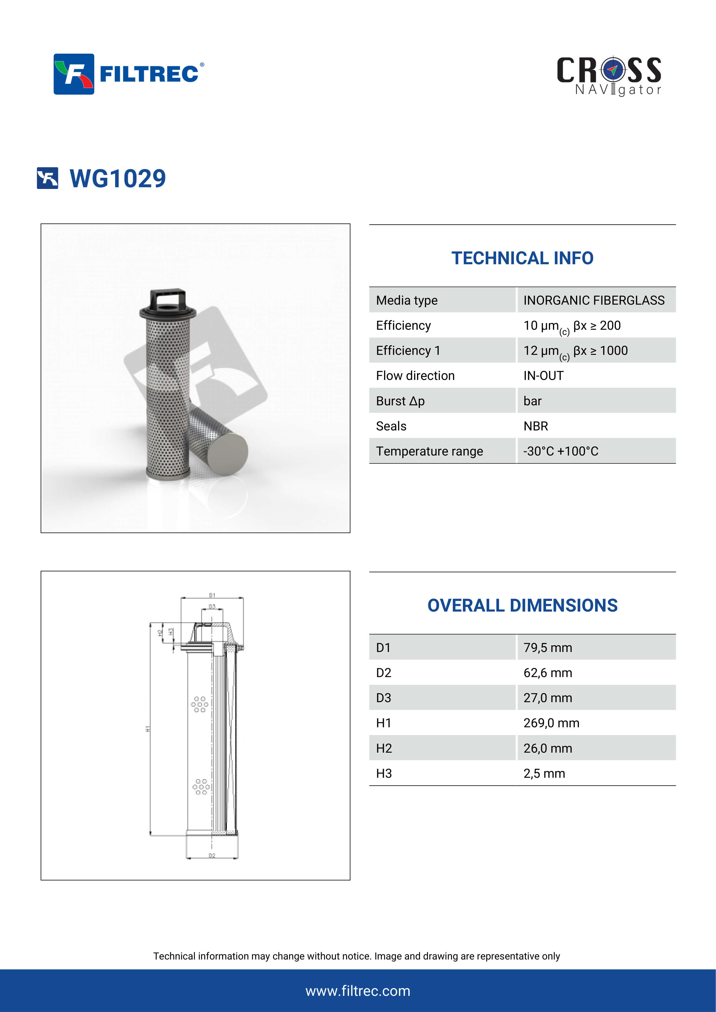 The efficiency of the element is shown using the Micron (µ) and Beta (β) ratings. The micron rating indicates the size of the particle being filtered and the beta rating the efficiency, calculated as 1/β.