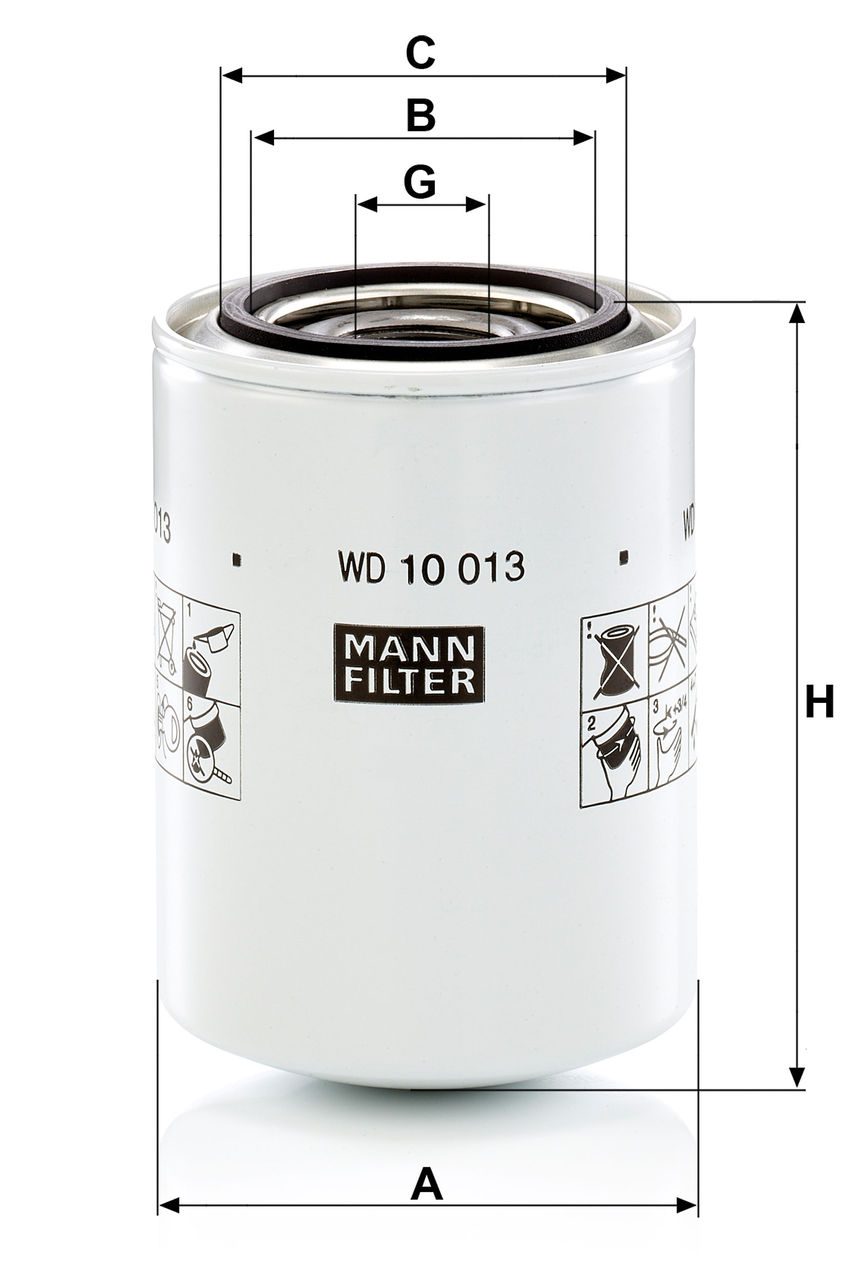 MANN-FILTER spin-on hydraulic filters offer maximum filtration performance and thus ensure trouble-free operation of the hydraulic system. Thanks to the filter medium, which is specially adapted to the intended use, the finest impurities are separated from the hydraulic fluid.Specification