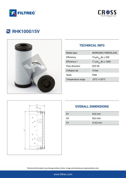 Engineered with their high performance media and a durable design, the RHK100G15V provides reliable and consistent performance over its lifespan, even in harsh operating environments. When you order from FilterFinder, you can trust that you are getting a reliable and high-quality replacement filter that will keep your system running smoothly.