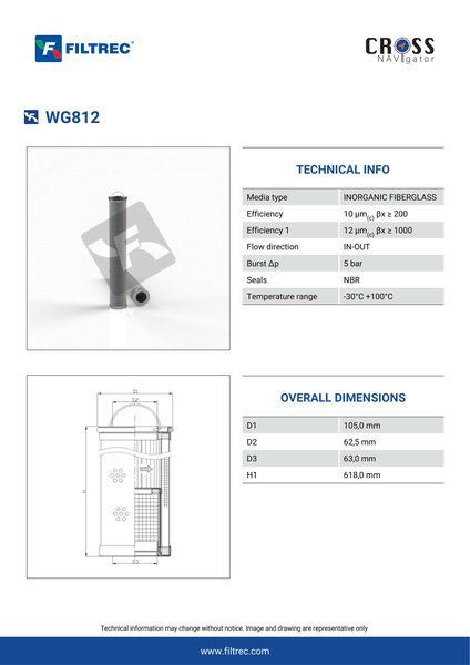 Engineered with their high performance media and a durable design, the WG812 provides reliable and consistent performance over its lifespan, even in harsh operating environments. When you order from FilterFinder, you can trust that you are getting a reliable and high-quality replacement filter that will keep your system running smoothly.