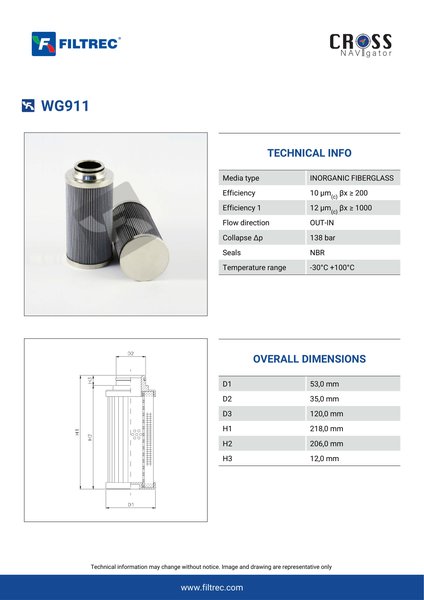 Engineered with their high performance media and a durable design, the WG911 provides reliable and consistent performance over its lifespan, even in harsh operating environments. When you order from FilterFinder, you can trust that you are getting a reliable and high-quality replacement filter that will keep your system running smoothly.