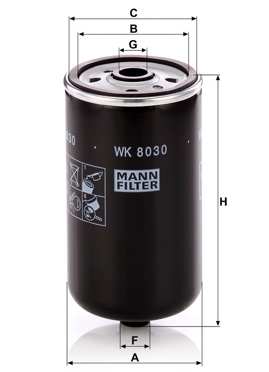 The efficiency of the element is shown using the Micron (µ) and Beta (β) ratings. The micron rating indicates the size of the particle being filtered and the beta rating the efficiency, calculated as 1/β.