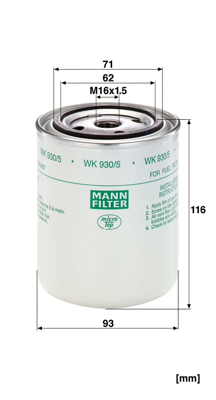 Mann Filter WK 930/5 Replaces the Mann Filter WK9305