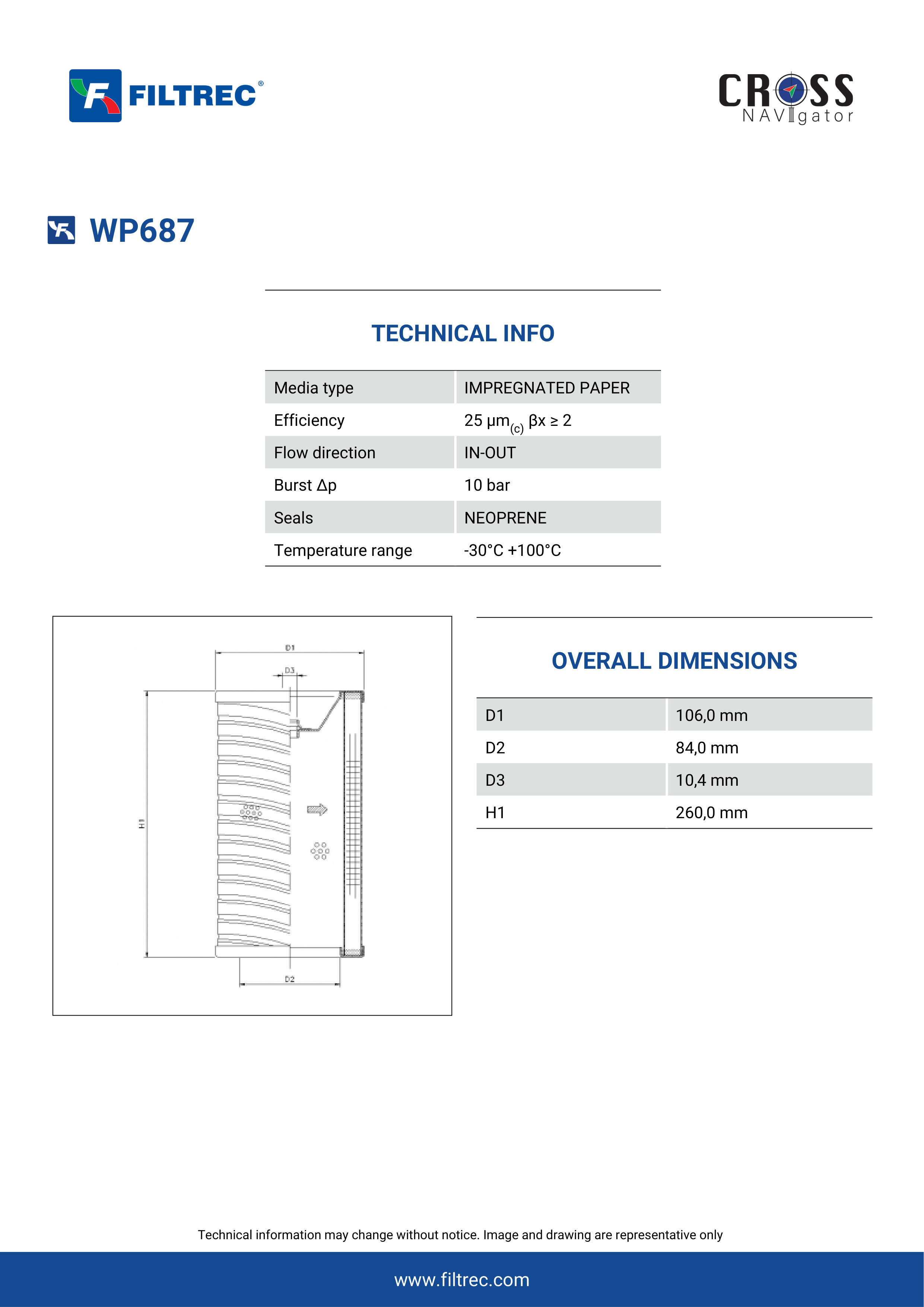 Genuine Filtrec WP687. This Filtrec element is designed to meet or exceed the quality and performance of brand OEM’s ensuring superior filtration performance and long-lasting durability.