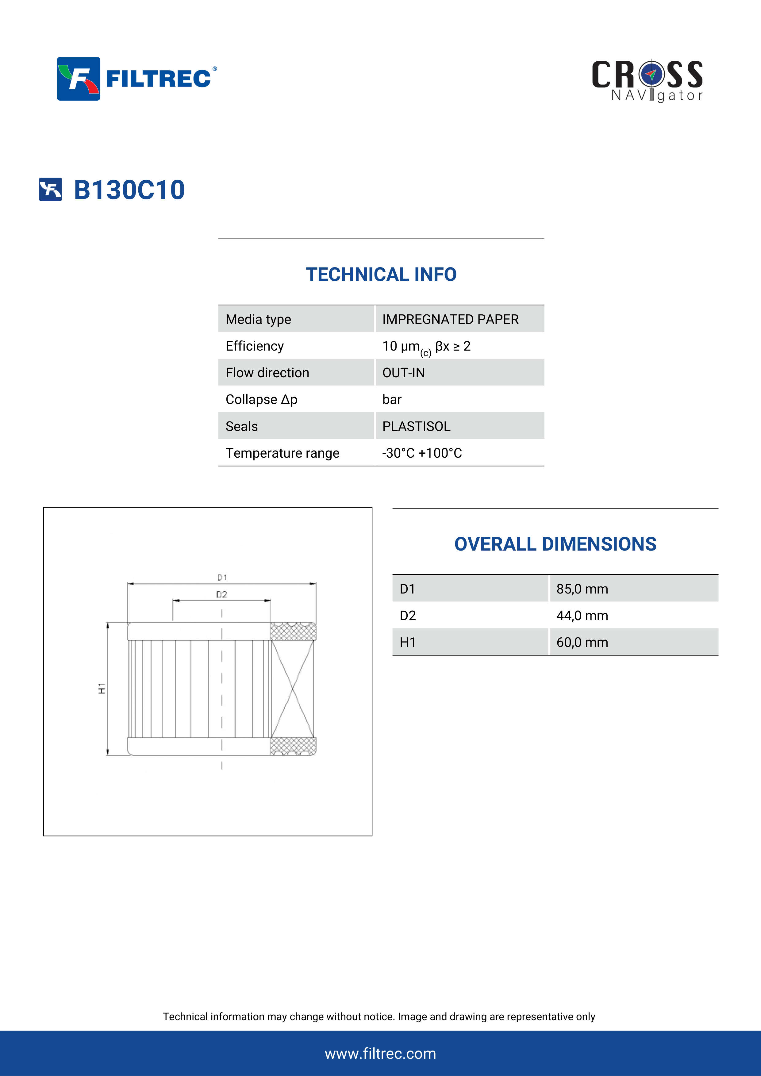 Genuine Filtrec B130C10. This Filtrec element is designed to meet or exceed the quality and performance of brand OEM’s ensuring superior filtration performance and long-lasting durability.