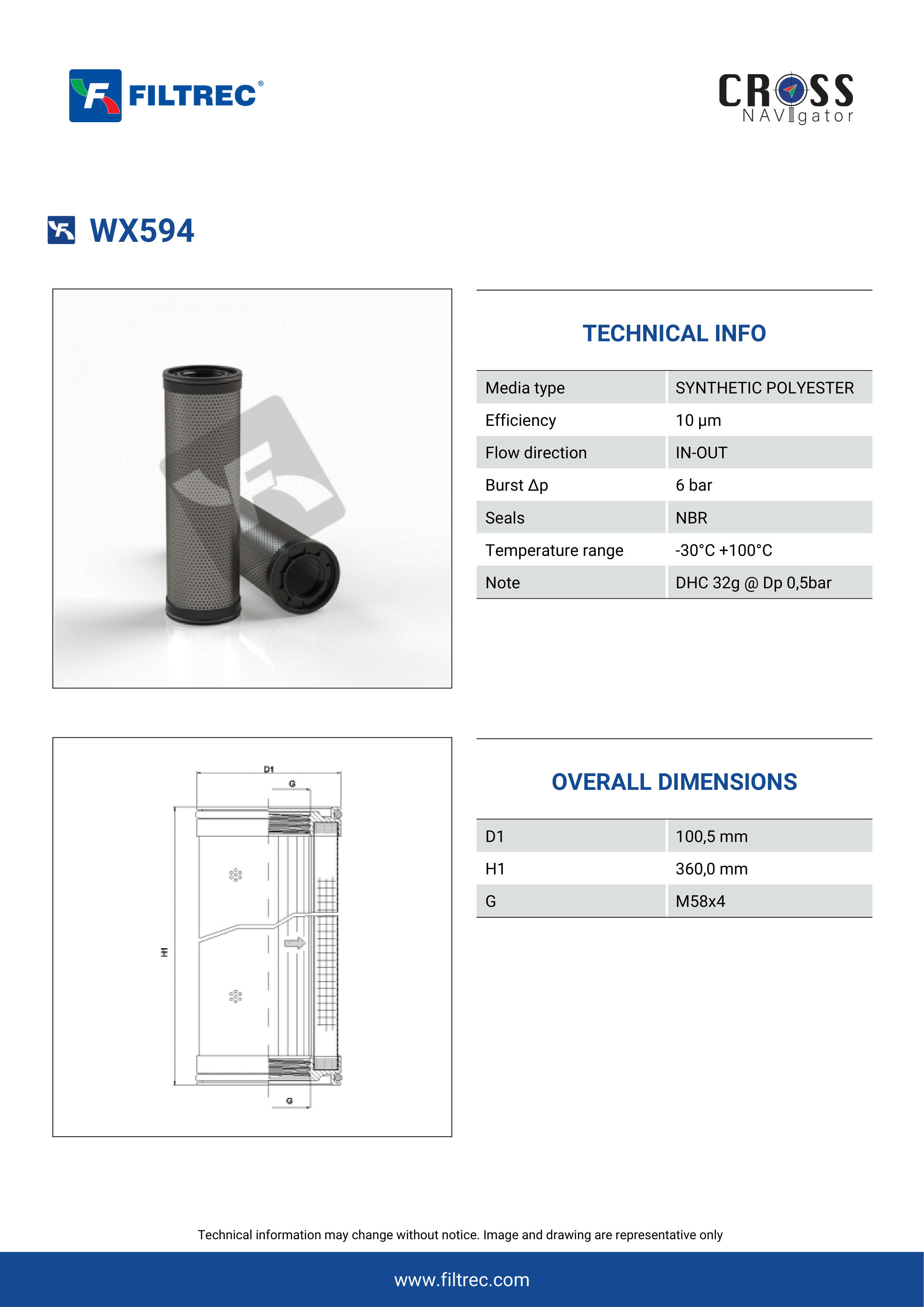 Genuine Filtrec WX594. This Filtrec element is designed to meet or exceed the quality and performance of brand OEM’s ensuring superior filtration performance and long-lasting durability.