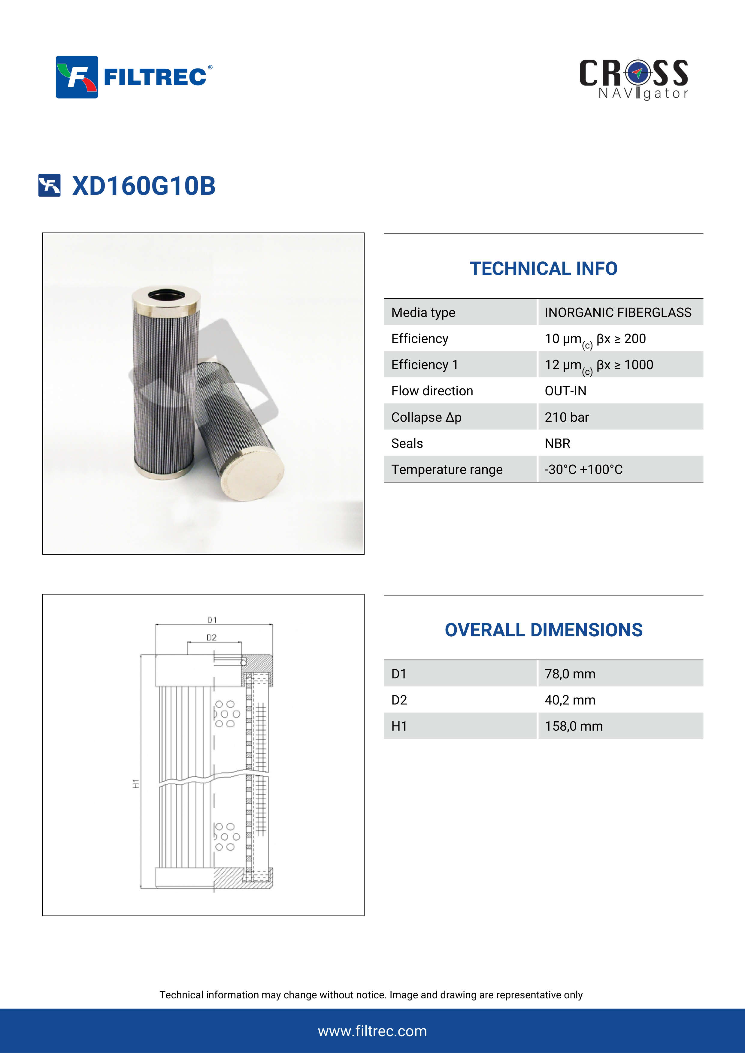 Genuine Filtrec XD160G10B. This Filtrec element is designed to meet or exceed the quality and performance of brand OEM’s ensuring superior filtration performance and long-lasting durability.