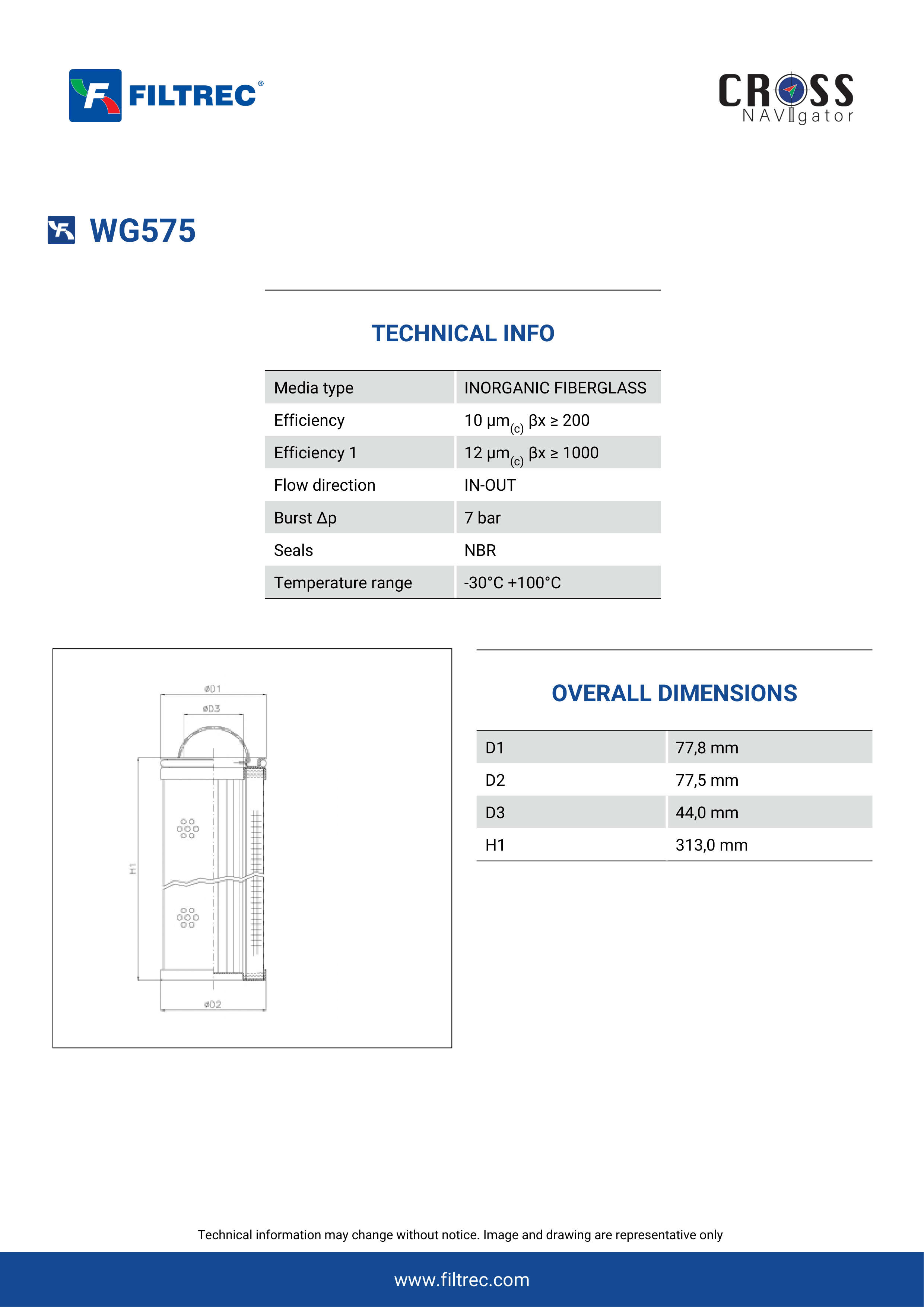 Genuine Filtrec WG575. This Filtrec element is designed to meet or exceed the quality and performance of brand OEM’s ensuring superior filtration performance and long-lasting durability.